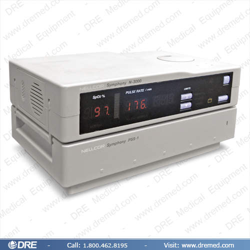 La Sinfonía N-3000 de Nellcor proporciona la escucha no invasiva, continua de la saturación de oxígeno de pacientes de neonates a adultos. La Sinfonía es un monitor independiente o puede ser combinada con el N3100 BP monitor y/o N3200 ECG demostración/impresora. El N-3000 tiene la reserva de batería cuando debe ser desconectado del poder de corriente alterna. Este modelo está disponible restaurado de DRE.