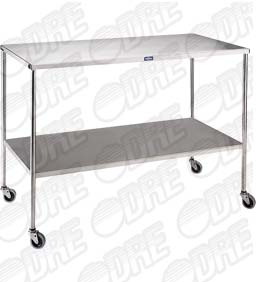 DRE ofrece una amplia variedad de mesasposteriores, también conocidas como mesas de instrumento o trabajo. Disponibles en terminaciones de cromo o acero inoxidable. Las opciones incluyen medidas de la mesa y cantidad de estantes.