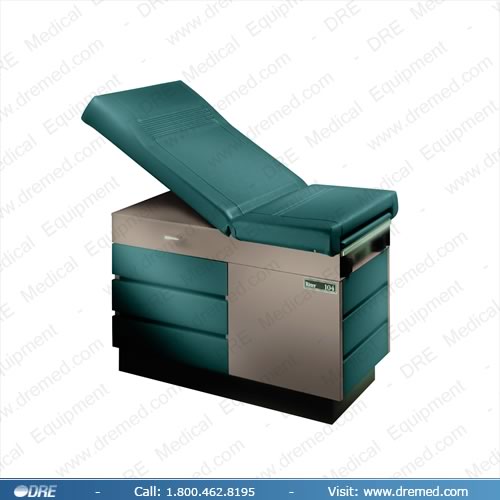 The 104's versatility is further enhanced with an electrical receptacle, non-skid locking footstep and five large drawers for storage. Select from among numerous accessories like pelvic tilt, stainless steel irrigation pan or knee crutches to customize the 104.
