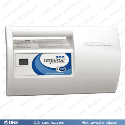 The Kendall 7325 Response Sequential Compression Device (SCD) is a clinically proven, non-invasive method of prophylaxis to reduce the incidence of deep vein thrombosis (DVT). For use on patients with high risk conditions such as obesity, advanced age, malignancy, or prior thromboembolism. Pneumatic controller provides intermittent of pulses of compressed air which sequentially inflate the multiple chambers of the sleeve beginning at the ankle and moving up the leg. Results in a wave-like milking action which empties the veins and results in greatly increased peak blood flow velocity. Disposable sleeves available in knee and thigh lengths. Thigh-length sleeve available in sterile packaging for use on the draped leg during major hip surgery. Equipped with features that assure maximum control, safety and patient comfort. Various purchase programs available. The SCD RESPONSE Compression System can detect each patient's individual vascular refill rate to deliver the most reliable, efficient, customized compression therapy on the market.