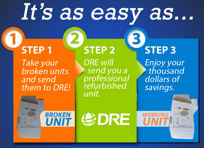 DRE offers the Philips M2601A, M2601B and M4841A transmitters, along with our existing stock of professionally refurbished Philips Telemon and Intellivue patient monitors. DRE has access to the parts for these models, allowing us to provide a quick turnaround. Your facility can save thousands with exchange in comparison to purchasing new technology provided by the manufacturer.