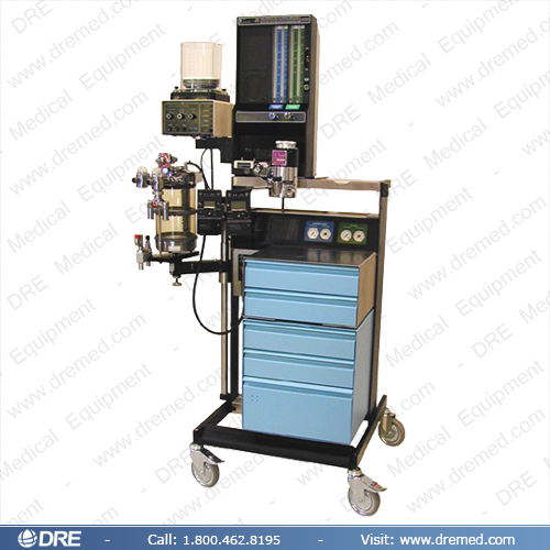 The Modulus (Mod I)is a pneumatic anesthesia machine that can utilize either 100 series or Tec series vaporizers. This is a compact and reliable unit and most parts are available through DRE. The Mod I is compatible with Ohio V-5, V-5A, Ohmeda 7000 or 7800 ventilators and with Ohio 100 series, Tec IV, Tec V, or Tec VI vaporizers. A 21DC CO2 absorber standard. Drawer pack configurations may vary from picture.