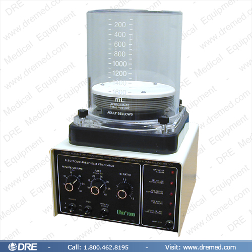 Refurbished. Adult or optional pediatric use. AC power with battery back-up. Precision electronic controls. Audible and visual alarms. Controlled parameter ranges: minute volume, respiratory rate, and I:E ratio.
