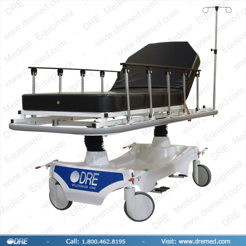 The DRE Millennium-3 Stretcher is a durable alternative for budget-conscious facilities. Supporting up to 550-pounds on a four-inch foam mattress, the stretcher adjusts to Trendelenburg and Reverse-Trendelenburg positions. Infusion pole sockets at each corner eliminate the need for additional equipment in small spaces and ensure a secure transport. The back adjusts pneumatically for safety and ease of use. Other standard features are central locking casters, brake/steer pedals at each corner, built-in oxygen cylinder storage, height adjustment (23.5 to 35 inches), and a one-year warranty.
