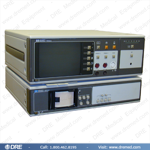 The Hewlett Packard 7835x ECG Unit describes a series of multi-parameter monitors. These can be configured with one or more of the following: SAO2, NIBP, and/or invasive blood pressure. ECG is a standard parameter. Printers are optional (Image shown with optional printer). This series includes, but is not limited to, models 78352C, 78353A, 78354A, and 78354C. DRE sells the HP 7835x series monitors refurbished.