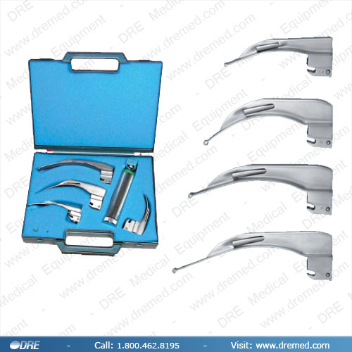 Fiber Optic Set Includes:Medium Handle, extra lamp, MacIntosh Blades Size: 1, 2, 3, 4, & case.